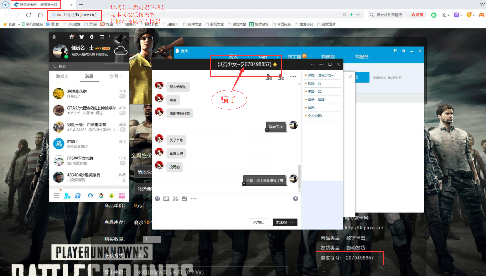 骗子QQ:2070498857 冒充畅想发卡平台谨防上当受骗