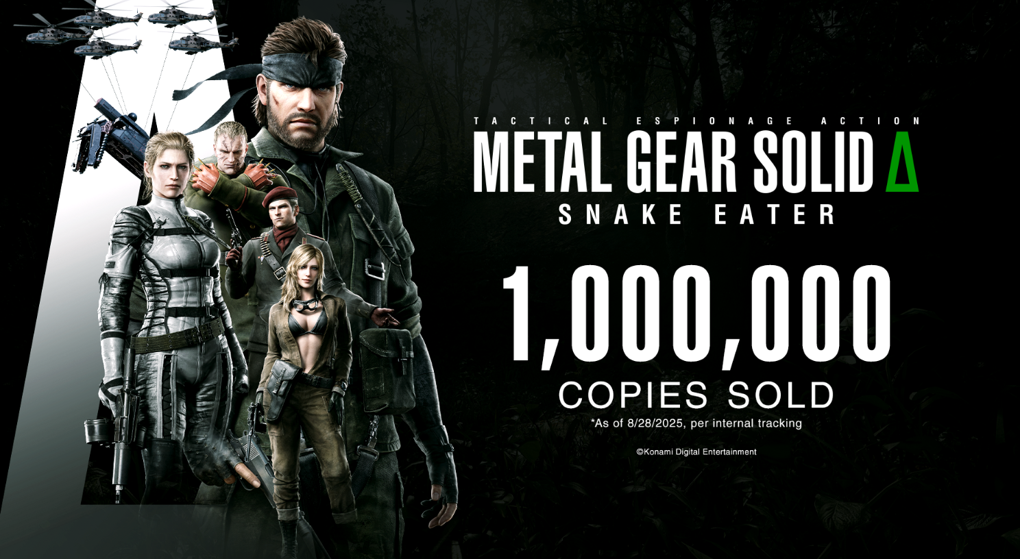 畅想网络关注,Konami Digital Entertainment 今日宣布,《合金装备 3:重制版》(METAL GEAR Δ) 在 PlayStation5、Xbox Series X|S 及 PC (Steam) 平台的全球累计销售量已突破一百万套。
