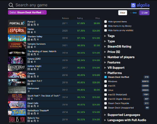 Steam Deck还有两周就要出货了,V社目前正在加紧对游戏进行测试,在过去一周内超过了150款游戏获得了V社官方认证可以完美支持Steam Deck。根据SteamDB的追踪列表,目前官方认证的游戏已经达到了310个。(截止至本文发出。)